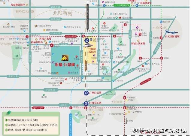 祈福万景峰占据广州北站旁的绝佳位置,尽享交通、商业、教育等多重优势。政府斥 275 亿巨资重点打造北站新城,片区发展潜力无限,未来将集聚高端商务、艺术会展等多元业态,吸引人流与资金流汇聚。项目周边交通网络发达,商业配套丰富,教育资源充足,再加上超 3 万㎡大型法式水景园林以及全现楼豪装发售的优势,无论是自住还是投资,都极具吸引力,是追求高品质生活与区域发展前景人士的理想之选。