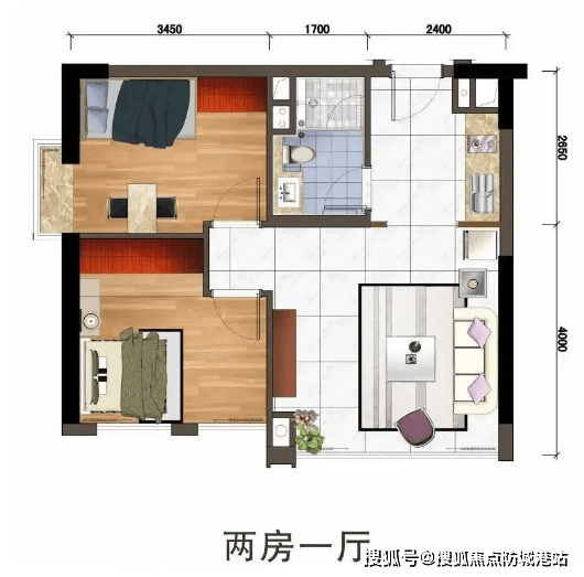 建面约43㎡户型:主打单身贵族、刚需过渡人群,户型紧凑实用,布局合理,南向设计,通风采光佳,全飘窗设计,增加室内使用空间,可打造为一室一厅一卫,满足单身人士的日常居住需求,总价低、压力小,同时也适合轻资产配置。