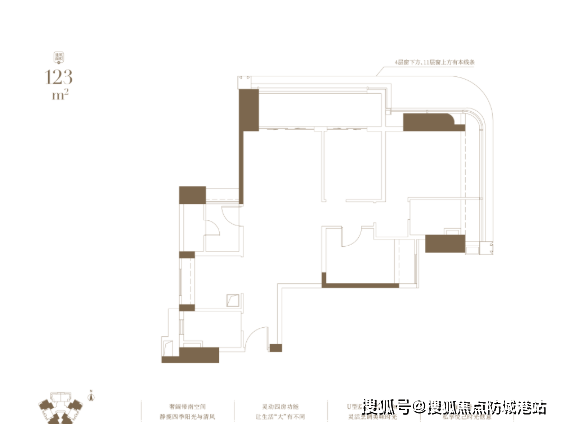 瑧尚延续英广对“小而精、高定感”地块的极致打磨能力。项目总建筑面积约5.3万㎡,仅规划208套住宅,稀缺性不言而喻。建筑采用高低区分区设计:低区(4-11层)主打建面约108-123㎡三至四房,精准匹配刚需改善需求;高区(13-37层)则聚焦建面约133-177㎡阔绰四房,专为高端改善客群量身定制。