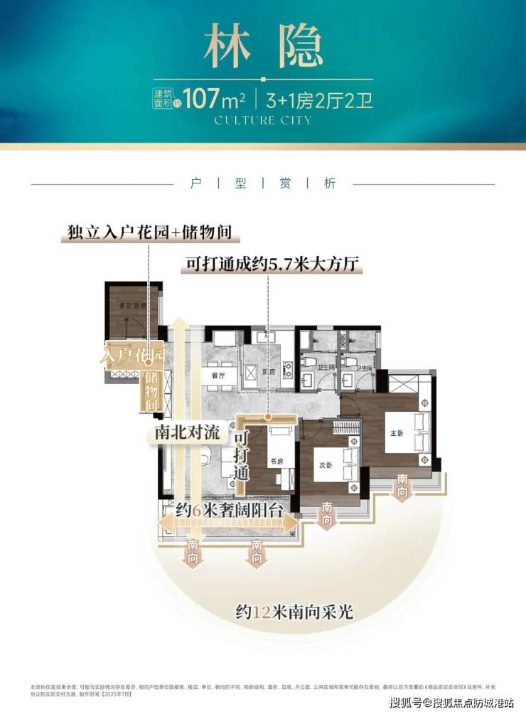 户型:107-181㎡纯四房户型,全南向设计,得房率85%(阳光家缘网备案数据)。