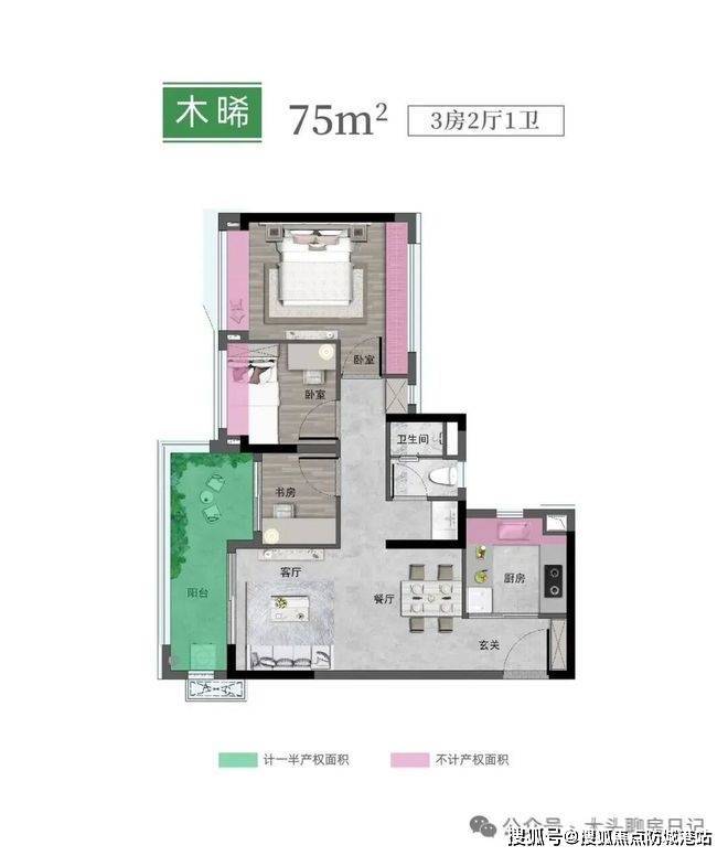 75㎡三房户型采用全南向布局设计,客厅与阳台连通,动线紧凑。对于预算有限但希望一步到位实现三房功能的家庭而言,这是科学城板块内总价门槛较低的选择之一。空间利用率高,适合年轻家庭首套置业。