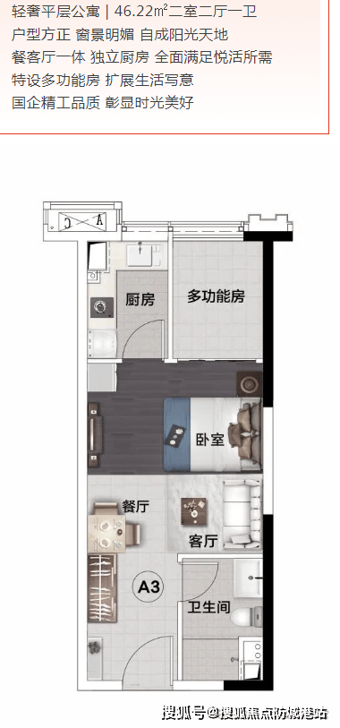 广州足球公园提供的户型丰富多样,能够满足不同购房者的需求。其中,轻奢平层公寓面积约为46.22平方米,采用二室二厅一卫设计,户型方正,窗景明媚,餐客厅一体,独立厨房,特设多功能房,扩展生活空间;而百变Loft产品则分为两种类型,一种是49.72平方米的一室二厅一卫,另一种是66.99平方米的二室二厅二卫,均拥有4.5米挑空客厅,上下双卫生间配置,充分提升了居住舒适度。无论是单身贵族还是小家庭,都能在这里找到适合自己的理想家园。