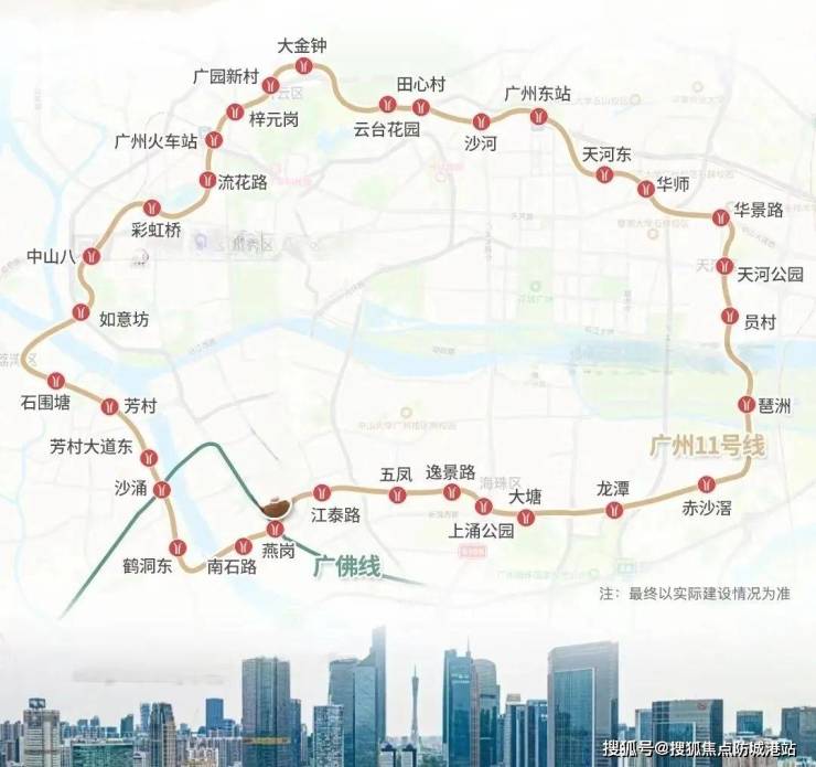 ※11号线鹤洞东站(在建):贯穿荔湾、海珠、天河、越秀中心四区,直达琶洲和广州东站;