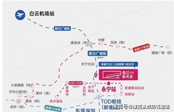珠江时光荟位于科学城东・开发区一小旁,地处增城永宁板块。目前板块内暂无已开通地铁,日常出行主要依赖自驾与公交,但交通规划优势显著。项目紧邻在建新白广城轨永宁南站,预计 2024 年开通,未来向北可经白云机场至广州北站,1 站直达新塘 TOD,2 站到黄埔,3 站抵达天河北,跨区通勤效率大幅提升;同时,地铁 23 号线永宁站已纳入规划,未来可串联新塘、科学城金融城、琶洲等核心板块,进一步完善交通网络。自驾方面,项目周边环绕济广、广园、荔新、增天(建设中)4 条高快速路,以及广汕公路、新新大道等主干道,轻松通往广州各区及周边城市。
