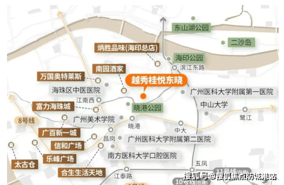 - 交通上,越秀桂悦东晓表现出色。距离地铁8号线晓港站约700米,步行约10分钟可达。搭乘8号线可直达老荔湾、琶洲、客村等地,1站到昌岗换乘2号线可前往南站和越秀,3站到客村换乘3号线能达珠江新城。乘坐地铁去琶洲7个站直达,去珠江新城30分钟左右可到。自驾方面,家门口就是东晓路,周边有昌岗路、新港西路、内环等干线,开车去东风东、琶洲、珠江新城等区域,30分钟内均可到达,无论是地铁还是自驾,都能满足居民高效出行需求。售楼处电话:400 - 828 - 5661