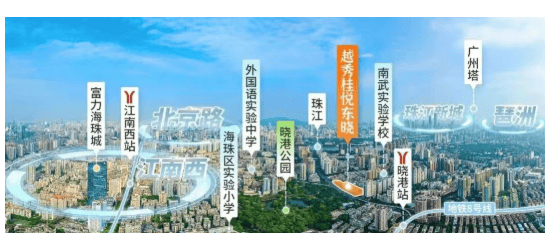 - 越秀桂悦东晓坐落于海印桥南晓港板块,紧邻东晓路与内环路高架桥。该地块于去年年底由越秀以19亿元总价拿下,楼面价约3.2万/平。项目周边配套成熟,对面即晓港公园,距地铁8号线晓港站近,交通便捷,前往越秀和珠城便利。教育方面已官宣对口海珠外国语实验中学附属小学。小区规模不大,仅3栋楼,前期推出的1 - 2栋销售良好,现加推最后一栋3号楼,并开放实体展示区与实体板房。项目占地面积约1.18万平,建筑面积约5.9万平,绿化率35%,容积率5.0,车位比1:1 ,由越秀物业提供服务,物业费3.6元/平。售楼处电话:400 - 828 - 5661