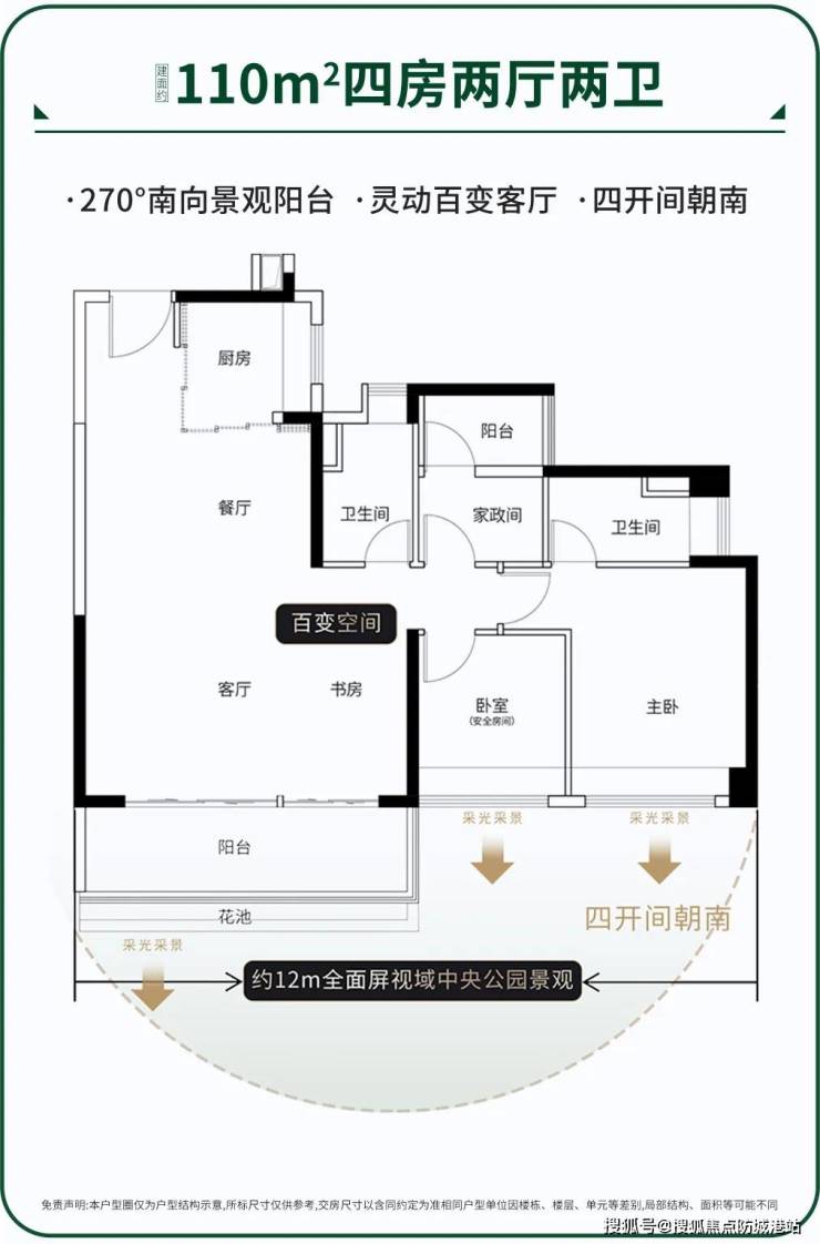 3. 168㎡四房两厅三卫:高端改善型户型,户型方正,南北通透,空间开阔大气;客厅横厅设计,搭配超大落地窗,采光通风极佳,园林景观尽收眼底;主卧为套房设计,带独立卫生间、衣帽间和观景飘窗,私密性强,舒适度拉满;两个次卧也为套房设计,满足家人的私密居住需求;第四个房间可作为书房、儿童房或休闲室,灵活适配家庭需求;厨房采用U型设计,操作便捷,连接生活阳台,实用性强;整体户型动静分区合理,空间布局科学,适合追求高品质生活的改善型家庭。
