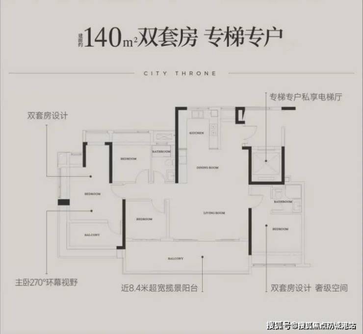 190㎡五房:双套房设计,270°景观阳台,总价约1700万。