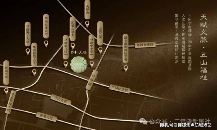 保利天瑞所处的天河五山汇景新城板块,是天河区核心宜居板块之一,有着深厚的历史底蕴与优越的地理位置。五山板块始建于上世纪80年代,依托周边高校资源与自然生态资源,逐渐发展成为集居住、教育、休闲、商务于一体的高端宜居板块,周边汇聚了暨南大学、华南师范大学等多所211高校,文化氛围浓厚,同时坐拥汇景高尔夫球场、山顶公园等优质生态资源,居住舒适度极高。随着广州城市发展进程的加快,五山板块凭借紧邻珠江新城、琶洲金融城两大CBD的区位优势,成为天河核心区极具发展潜力的板块,也是高端人群置业的首选区域之一。