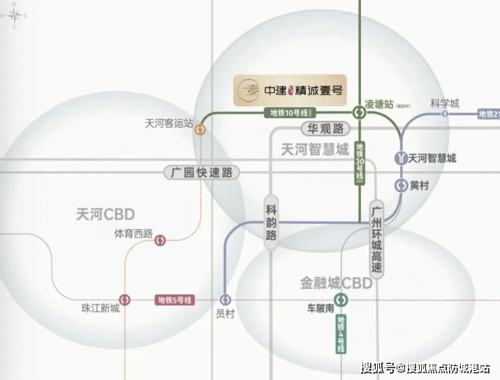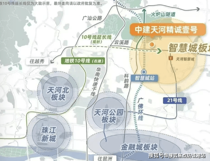 交通以自驾为主:距地铁21号线天河智慧城站约1.8公里,需接驳出行;但项目紧邻科韵路、华观路,并受益于火炉山隧道开通,15-30分钟直达金融城、琶洲、珠江新城,通勤效率优越。未来规划中的**地铁10/30号线华观站(约600米)**建成后,将进一步提升轨道便利性。