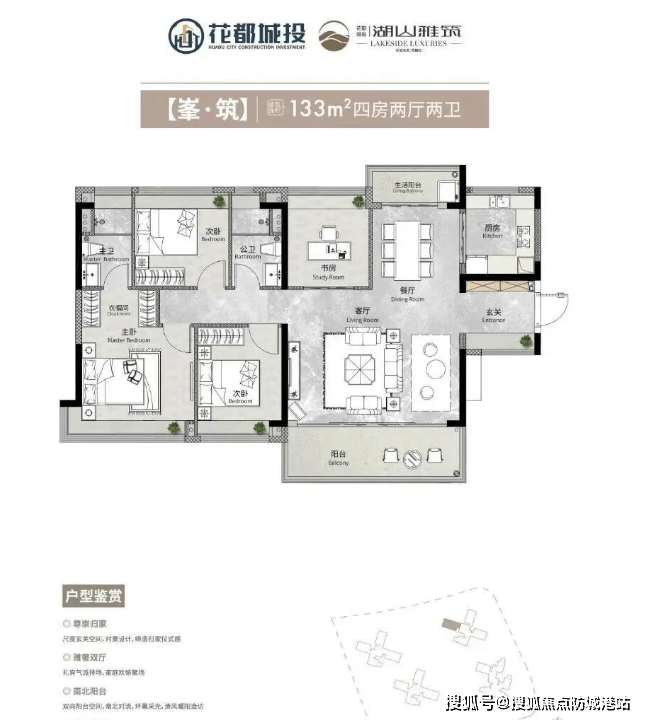 湖山雅筑作为马鞍山新区最后一个新规新房小区,享有成熟配套和新城面貌。项目北靠马鞍山公园,南望花都湖湿地公园,自然景观与城市配套兼备。其户型设计合理,提供94㎡三房、110㎡四房以及133㎡四房三种选择,均为全南向设计,确保了充足的采光。特别是94㎡户型采用竖厅布局,实用率高;而110㎡和133㎡户型则采用了十字厅设计,南北对流,空间利用率可达90%以上。此外,开发商为花都城投,具备较强的资金实力和开发经验,保证了项目的品质。