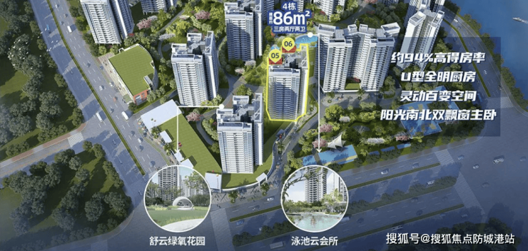 社区配套泳池、会所、儿童乐园、绿氧花园、健身区及艺术空间,生活便利全龄覆盖