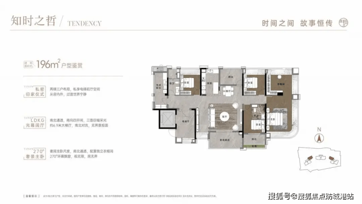 项目最受欢迎户型为 196㎡四房两厅三卫,累计成交 62 套,占总成交套数的 48.4%,成为改善家庭的首选户型;