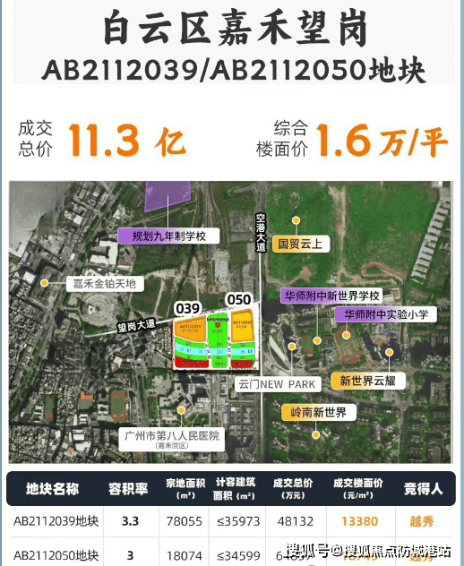 越秀·贝好家·嘉悦云启位于白云区嘉禾望岗板块,空港大道与望岗大马路交汇处,是集住宅、商业、教育配套于一体的TOD综合项目。项目由越秀地产与贝壳贝好家联合开发,备案名分别为嘉悦园、望悦园,于2025年4月30日成功竞得嘉禾望岗AB2112039地块与050地块,拿地总价分别为4.81亿和6.48亿,地价分别为1.34万/㎡和1.87万/㎡(未扣除配建)。