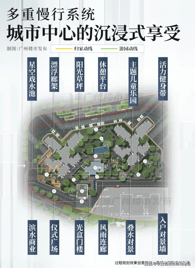 在区域贡献方面,项目不仅承担着提升嘉禾望岗城市界面的使命,更通过配建54班九年一贯制学校、幼儿园及停车场等公建配套,完善区域教育与生活设施,助力白云“北优”战略落地。同时,项目的滨河商业与社区商业街区,将进一步丰富板块商业业态,激活区域经济活力,为嘉禾望岗打造都市水岸生活新标杆注入强劲动力。