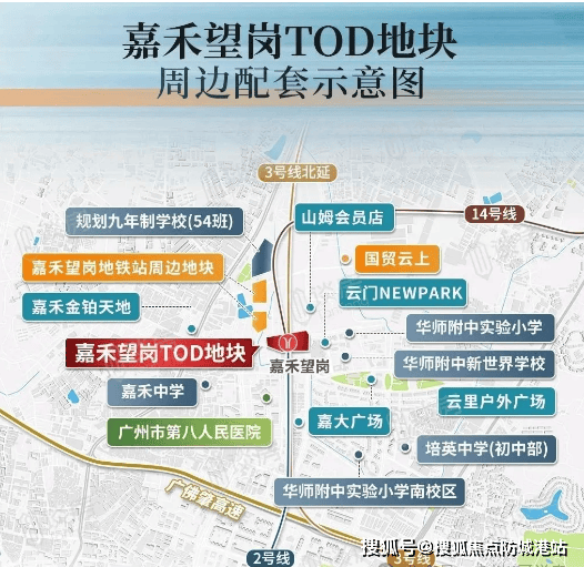 交通方面,项目是真正的三轨地铁上盖TOD项目,楼下即达地铁2号线、3号线、14号线嘉禾望岗站,日均客流量超32万人次,是广州为数不多的三轨交汇枢纽,客流规模稳居全市前三。其中,地铁3号线可直达白云机场、珠江新城、天河北等核心区域,2号线串联白云新城、公园前等商圈,14号线衔接从化与中心城区,三条线路形成高效通勤网络,实现半小时通达广州主城核心。