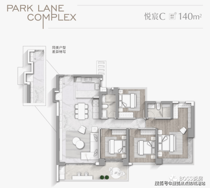 建面约142㎡四房:总价区间约923万-1065万元
