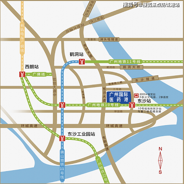 广州国际医药港地理区位得天独厚,“海陆空铁” 立体化交通网络发达,从项目出发到广州南站只需要8分钟,通过高铁一小时可以联通香港和澳门;40分钟可以到达白云国际机场,90分钟车程则可覆盖大湾区9大机场,真正是立足广州,辐射粤港澳,走向全球。周边未来规划三条地铁线路,公交、有轨电车等配套完善。