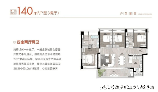 建面约140㎡四房两厅三卫户型,在129㎡户型基础上进一步提升空间尺度与舒适度,适合人口较多的家庭。户型采用南北通透设计,采光与通风效果俱佳,客厅空间开阔,可满足家庭聚会、商务接待等多重需求;主卧套房升级,配备独立卫浴、步入式衣帽间与观景飘窗,提升居住体验;增设一个卫生间,有效避免家庭早高峰拥堵问题,保障日常居住便捷。厨房配备高端全屋净化系统、厨余垃圾处理器等设施,贴合中国人饮食习惯,提升烹饪便利性。