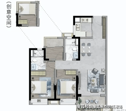 项目总建筑面积约23.6万平方米,由9栋住宅与3栋创意办公产品组成,总户数约1653户,容积率3.57,绿化率达35%,居住密度适中,社区环境舒适宜人。主力户型涵盖约81㎡、92㎡、95㎡、113㎡及124㎡等多种面积段,从2+1房到3+1房灵活布局,得房率高达80%-85%,空间利用率出色。