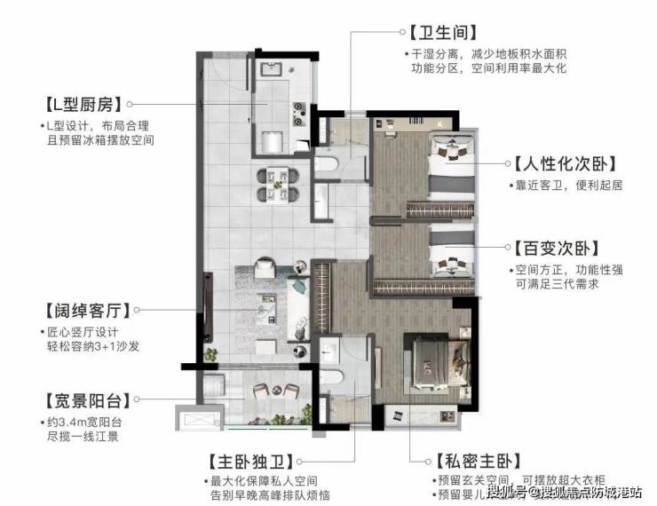 时代灯湖天境提供88平方米至104平方米不等的三至四房户型选择,所有户型均采用南北通透设计,确保充足的日照和良好的通风效果。特别是临江头排的设计,让每一户都能享有开阔的江景视野,为家庭生活增添了一份宁静与惬意。