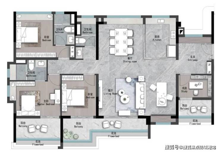 140㎡四房:双套房设计,客厅开间4.5米,总价824万起(天河区同户型总价普遍超1000万);