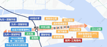 横沥岛尖作为南沙明珠湾起步区的核心板块,是广州南沙推进粤港澳大湾区国际金融岛建设的关键载体,而越秀江海潮鸣正处于这一板块的南岸核心,紧邻 IFF 永久会址,区位优势得天独厚。