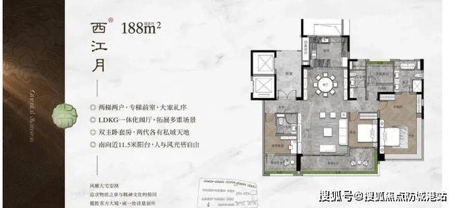 户型设计独具匠心。板式楼栋采用一字板式布局,户户朝南,不仅保证了良好的采光通风,还尽显东方美学。楼间距宽,均好性强,每一户都能享受充足阳光和园林视野。梯户比低,143 平户型也能专梯专户,舒适度高。268 平大户型更是亮点满满,3T2 户设计,有保姆电梯和保姆房,保证私密性。双主套互不干扰,LDKG 近 120 平大方厅,空间利用率高。主卧步入式衣帽间、双台盆配置,还有超 9 米的 270° 全景飘窗,设计精巧,满足高端居住需求。