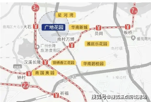 项目周边规划 3 条地铁线路,交通便利性无可替代。距离地铁 7 号线钟村站实测距离约 1.8 公里,步行 25 分钟可达,或乘坐社区巴士 3 分钟直达;距离地铁 18 号线南村万博站车程 12 分钟,2026 年 18 号线延长线开通后,3 站到琶洲、5 站到珠江新城,通勤效率大幅提升。此外,规划中的地铁 26 号线将在项目附近设站,未来将实现三线交汇,进一步扩大交通辐射范围。根据广州市交通运输局官方数据,项目所在区域地铁日均客流量达 12 万人次,公共交通出行便捷度位列番禺区前三。