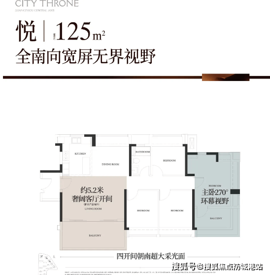 项目产品设计聚焦改善需求,户型覆盖 120-240㎡,以四房为主,适配不同规模改善家庭。其中 140㎡户型为 2 梯 2 户板楼设计,17 层小高层,纯南向布局,通风采光极佳,配备约 8.4 米南向巨幕阳台与 270° 飘窗,可直望中央园景与白云山景观,部分西边户更是小区唯一能同时望园景与白云山的户型,货量仅 16 套,稀缺性显著。