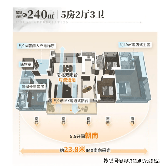 240㎡千万级大平层为独栋板楼设计,专梯专户,每户标配约 9㎡奢阔入户电梯厅,户户三面赏景,全盘仅此一栋,每户型仅 28 套,且每套都有专属命名,是高端改善家庭的终极之选。此外,所有户型实用率高达 100%-110%,空间利用率远超同类型项目,居住舒适度大幅提升。