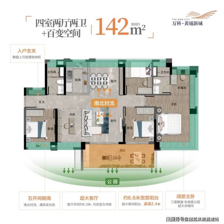 2. 户型:98-143㎡全能空间,得房率超85%