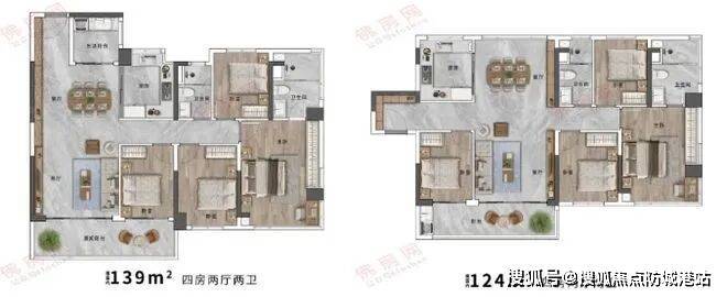 主力户型在空间利用上做了不少巧思,尤其97㎡三房堪称亮点。这个面积段做到四开间朝南已属少见,更特别的是,客厅与次卧共享一个6.3米景观阳台,打通后视觉通透感极强。每个卧室都预留了独立收纳空间,主卧配270°转角飘窗,躺床上就能看江。而124㎡四房则采用南北对流格局,餐客厅同宽设计让公共区域显得更开阔;中西厨结合+开放式岛台的配置,适合喜欢下厨又重视家庭互动的年轻家庭。值得一提的是,得益于佛山新规对阳台计容的优化,这些户型的实际使用面积几乎等于产权面积,得房率接近100%。