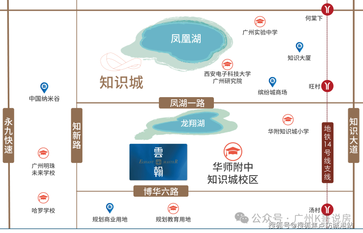 除了华附知识城校区,广开云翰周边还汇聚了丰富的教育资源。华附知识城小学、广东外语外贸大学知识城实验小学、凤凰湖小学、广州实验中学&小学、新侨中学等多所名校环绕四周,形成了一个完整的教育生态圈。这种“名校扎堆”的局面,在广州市范围内并不多见,充分体现了知识城对教育的高度重视和投入。