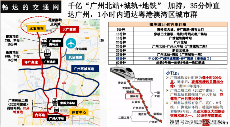 小区门口还有多条公交线路接驳花都市区,附近广清高速海布入口连接广州市区,开车半小时即可到白云。御华园住户还可乘专用穿梭巴士,到达地铁9号线马鞍山公园站,即可便捷搭乘地铁,往返广州市中心,实现双城半小时生活圈。