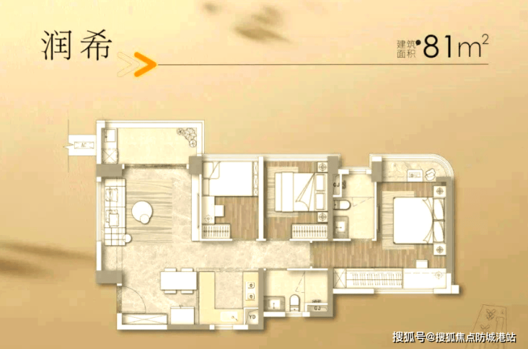 1. 81㎡三房两厅两卫(刚需入门款):总价360万起,是刚需家庭的首选户型,也是项目最受欢迎的刚需户型之一。根据备案数据显示,该户型采用LDK一体化布局,客厅、餐厅、厨房相连,空间通透,利用率高,日常活动空间充足,不会显得局促。主卧采用南北对流设计,采光通风极佳,私密性强,配备独立卫生间,提升居住舒适度;两间次卧尺寸适中,可灵活打通,既能作为儿童房、书房,也能根据家庭需求调整为储物间,适配小家庭或二胎家庭的居住需求,得房率超100%,在同面积段户型中,性价比优势十分突出,对于预算有限的刚需家庭来说,既能实现“三房两卫”的居住需求,又能控制购房成本,性价比拉满。