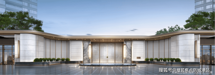 第一屿|集萃门庭近50m恢弘城市序厅,融入江水柔美灵动曲线,盛迎塔尖人物。