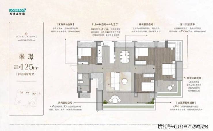 建面125㎡四房两厅两卫,南北通透,8.4米大阳台。