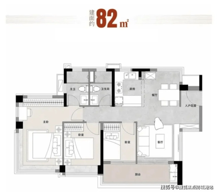 ▶ 82㎡三房:四开间朝南,12米南向面宽