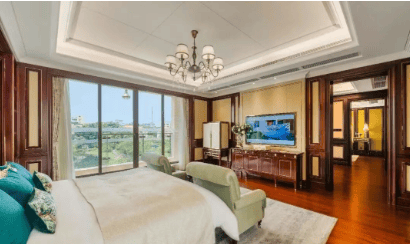 天颐华府位于广州市番禺区市桥东,是一个集高端、私密与自然美景于一体的纯别墅住宅社区。整个项目占地约87,812㎡,总建筑面积约46,731㎡,仅有129席湖居别墅,其中最引人注目的是392㎡类独栋湖景别墅,现正火热销售中。项目以超低密度容积率0.53,提供了一个远离喧嚣、亲近自然的理想居住空间。