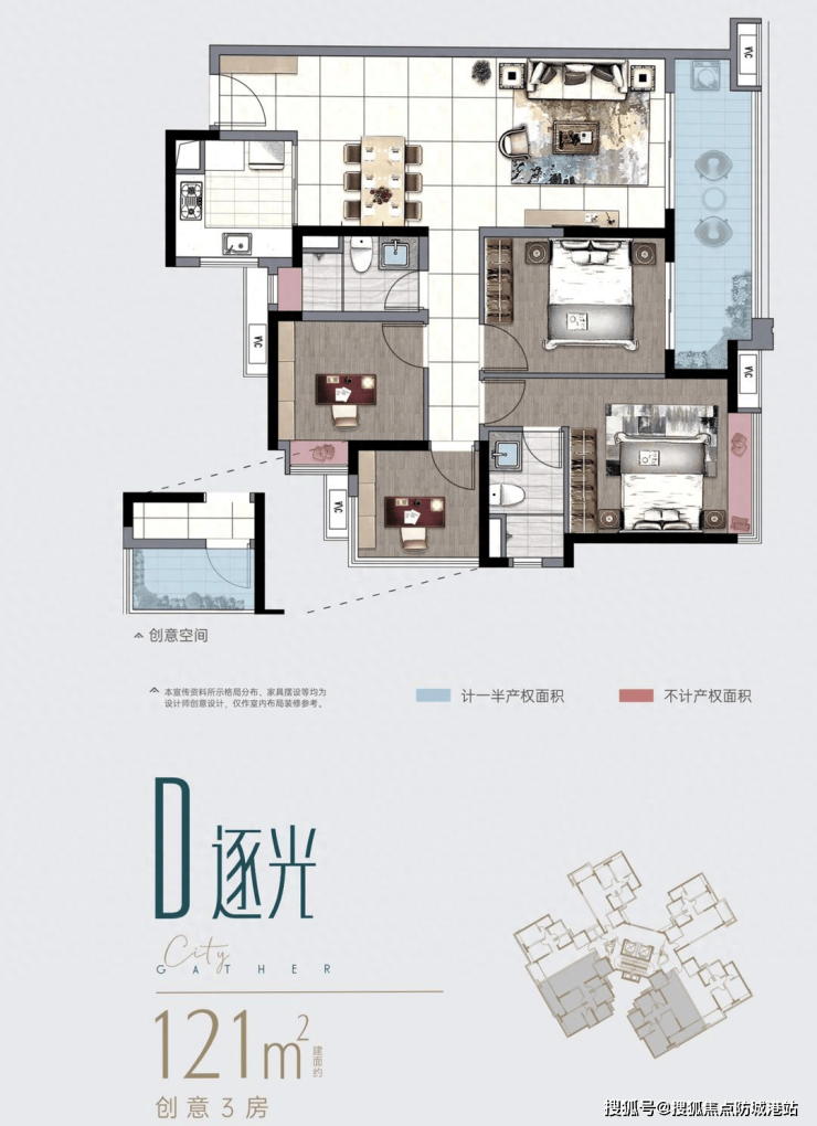 设计亮点:LDK一体化联厅(客厅进深近6米),南北通透;阳光入户花园连接6.8米观景阳台,直望科学城核心天际线;双套房设计,主卧配备步入式衣帽间+独立浴缸,适合三代同堂居住。