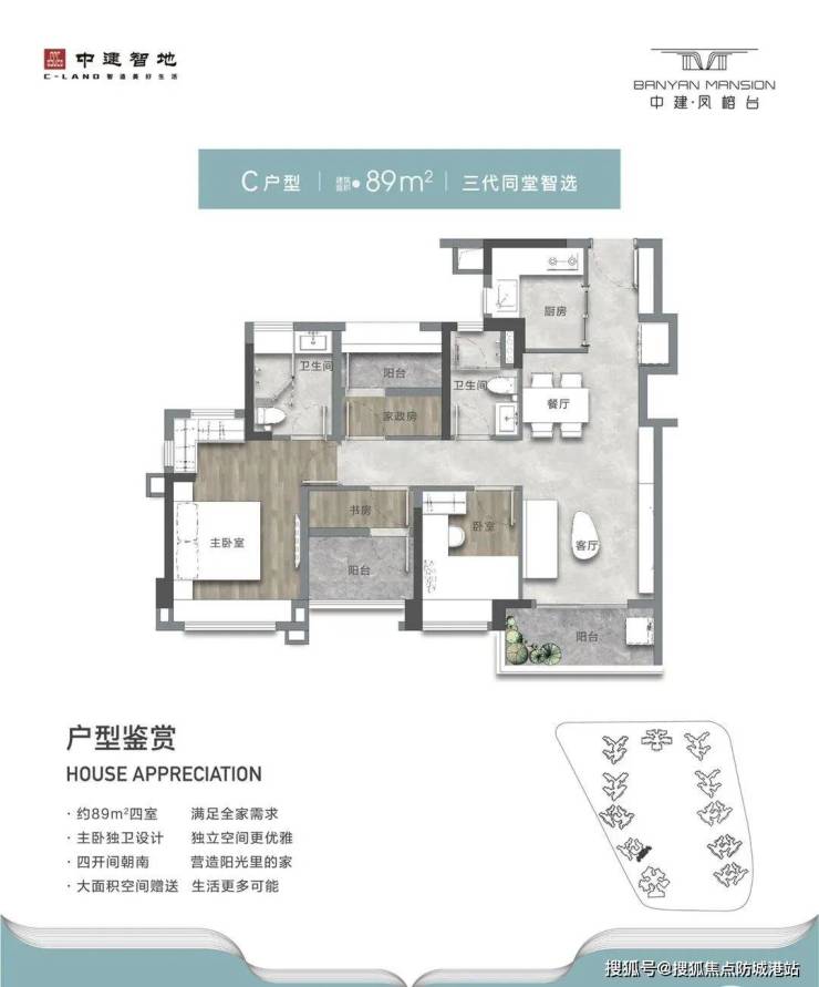 中建凤榕台主打67-105平方米的三四房户型,采用四开间全明采光设计,重构理想住区。百变空间设计增加了收纳/展示位赠送,细节之处尽显品质。目前项目总价约70万元起,首付门槛低,精装修现楼交付,极大降低了购房者的经济压力。