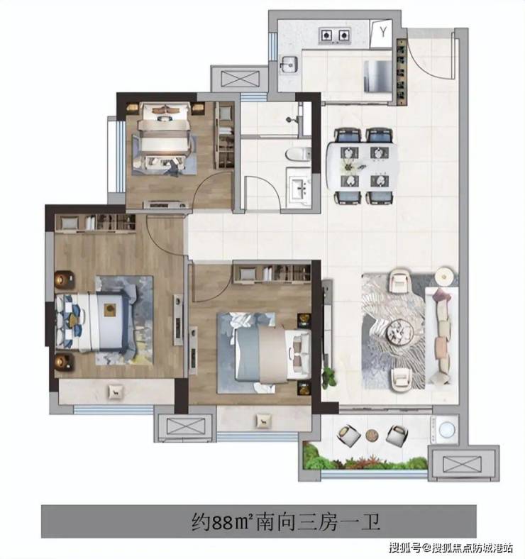 三开间朝南:南北通透,采光通风良好,提供舒适的居住体验。