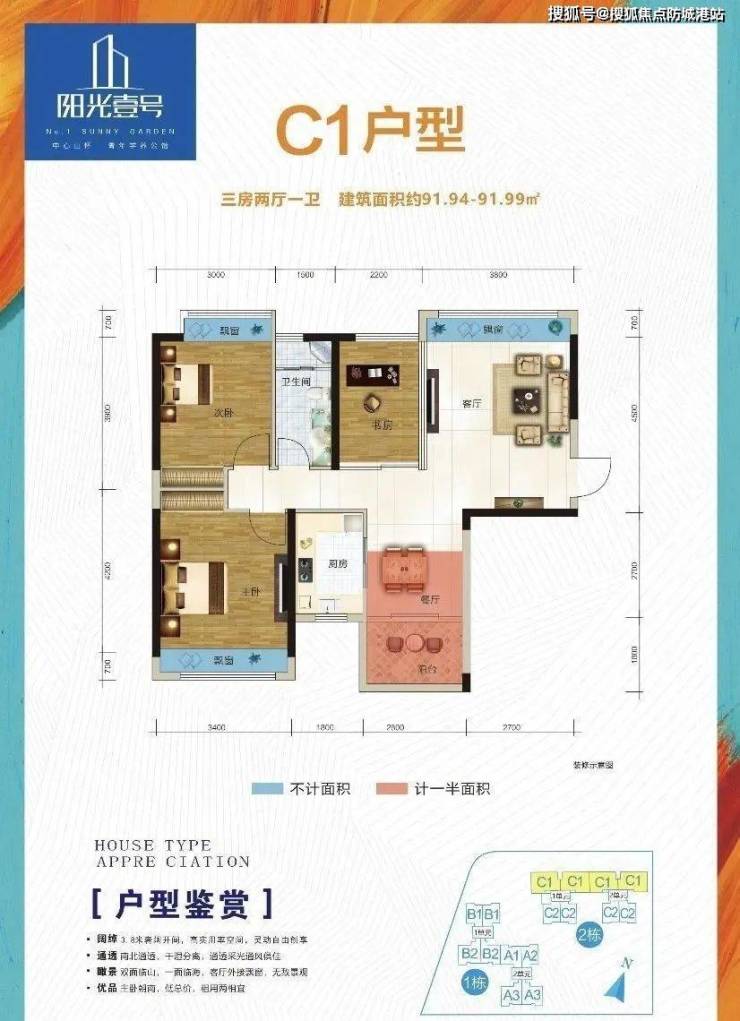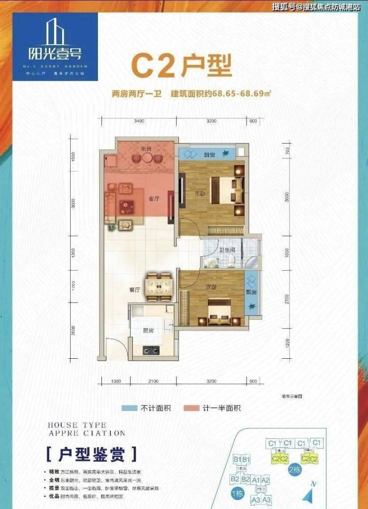 5.绝版户型,超高95%得房率,68、91㎡2至3房品质景观公馆。