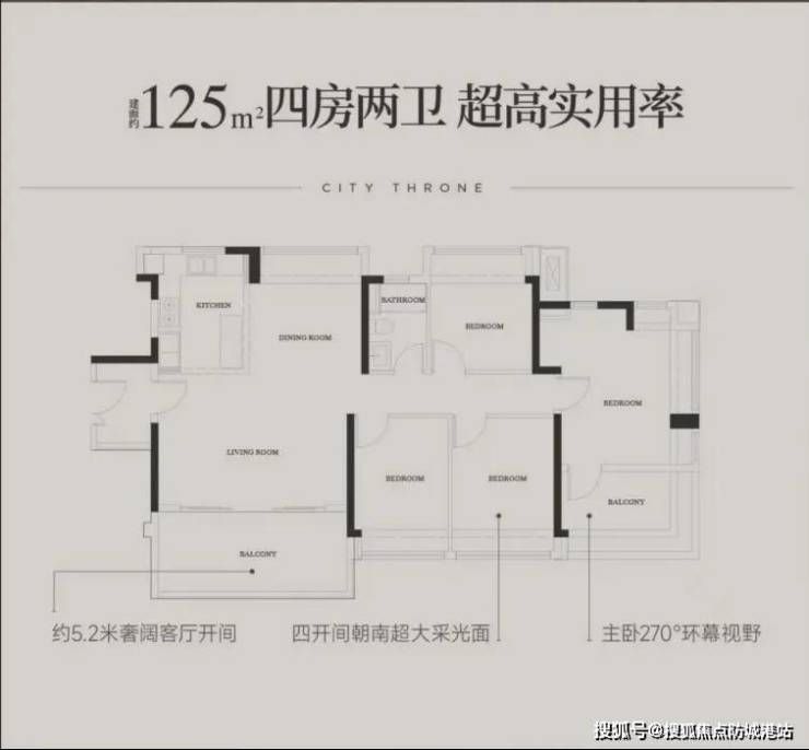 T5栋:190㎡四房,仅28套,专梯专户,总价1615万起。