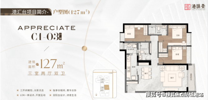 127㎡三房两厅两卫,三开间朝阳,LDK一体设计,居住舒适度高。