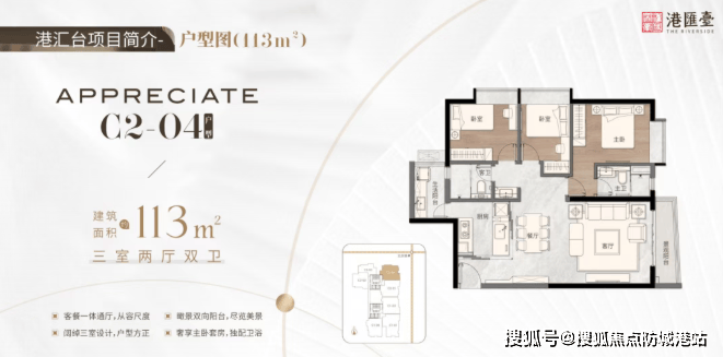 113㎡三房两厅两卫,阔绰三室设计,瞰景双向阳台,视野极佳。