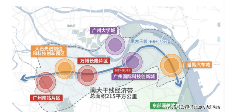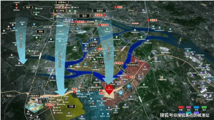万博作为广州南部核心商圈,已汇聚海量企业总部、高端商业体与高薪就业人群,琶洲与万博双商圈联动发展,进一步强化了该片区的城市核心地位。广深港澳科技走廊、广州科技创新轴、南大干线经济带三大科创产业轴线在此交汇,为片区带来持续的产业支撑、人口导入与价值提升动力,片区发展潜力与居住价值长期向好。