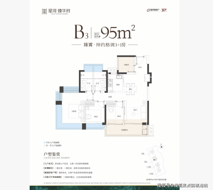 - 95㎡三房:3+1灵动空间,入户飘窗玄关,兼顾收纳与观景;