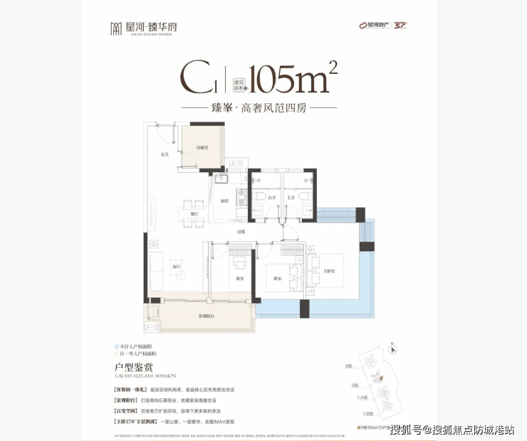 - 105㎡四房:全南向四开间,通透采光,满足多孩家庭居住需求;